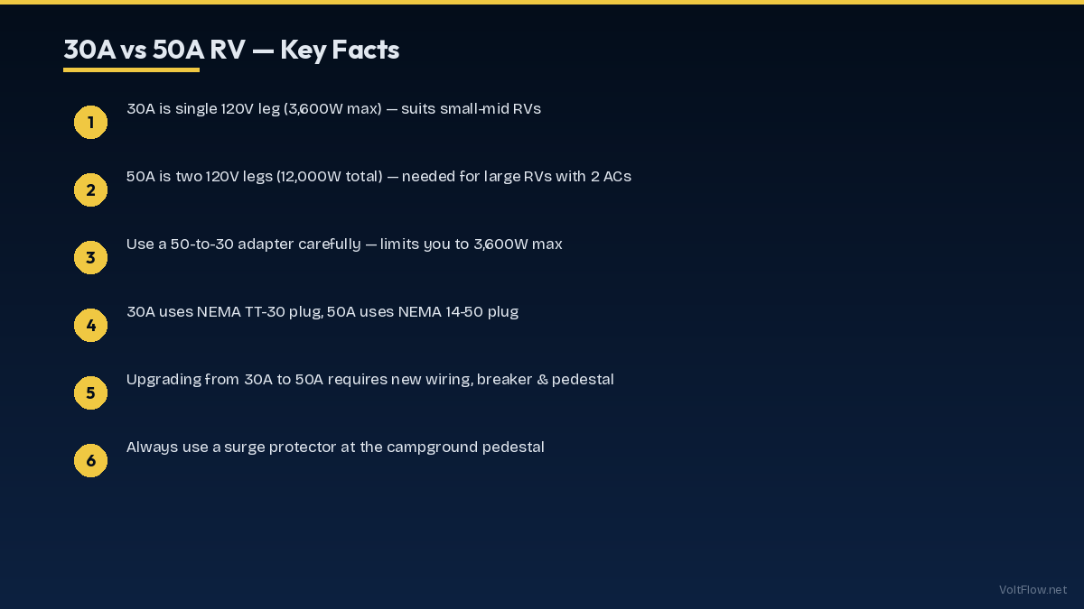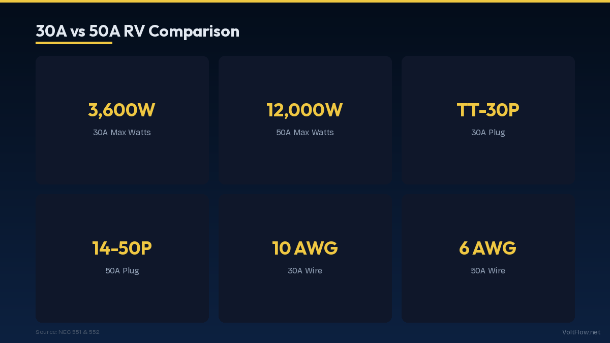 30-Amp vs 50-Amp RV Wiring Guide 2026: Complete Comparison