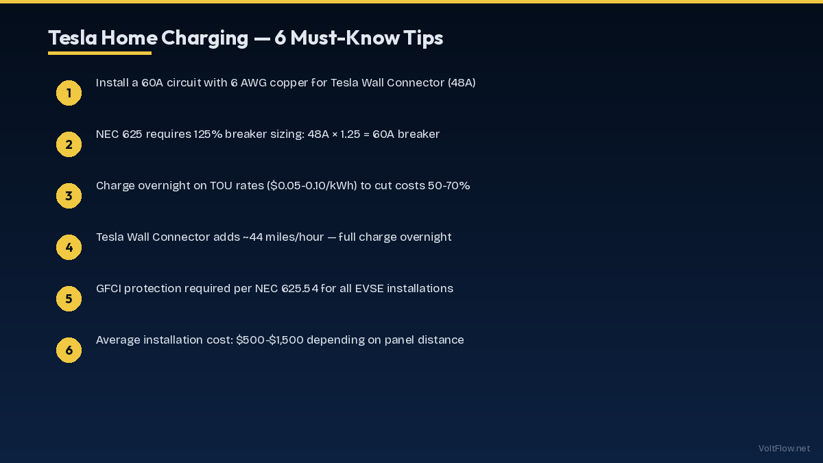 Tesla home charging comes in two flavors that differ in speed, cost, and convenience. Level 1 charging uses the standard 120-volt household outlet and the mobile connector that comes with your Tesla (or sold as an accessory for newer models). It adds approximately 3-5 miles of range per hour, meaning a full overnight charge of 10-12 hours adds only 30-60 miles. Level 1 charging is essentially free to set up since you already have the outlet. It works acceptably for low-mileage drivers who drive less than 30 miles per day and can charge every night. The electricity cost per kWh is identical to Level 2 since you are paying the same rate regardless of charging speed. However, Level 1 charging is slightly less efficient, losing about 10-15 percent of energy to heat during the longer charging session compared to 5-8 percent losses with Level 2. Level 2 charging uses a 240-volt outlet (typically NEMA 14-50) and either the Tesla Wall Connector or a third-party charger like ChargePoint Home Flex or Grizzl-E. Level 2 adds 25-44 miles of range per hour depending on the amperage. A 48-amp Tesla Wall Connector on a 60-amp circuit delivers the maximum 44 miles per hour, fully charging a Model 3 in about 6 hours. The Tesla Wall Connector costs $475 for the unit itself. Installation of a 240-volt circuit from your panel to the garage or carport runs $500-$1,500 depending on distance and complexity. Total Level 2 setup cost is typically $975-$2,000. Third-party Level 2 chargers cost $400-$700 for the unit and work with the same 240-volt circuit. The installation cost for the circuit is the same regardless of which charger you choose. Some third-party chargers offer features Tesla does not, like built-in energy monitoring, cable management systems, or the ability to charge non-Tesla EVs if your household has multiple brands. When calculating the return on investment for Level 2 charging installation, consider that the improved charging efficiency saves approximately $50-$100 per year in electricity compared to Level 1 for the average driver. The convenience value is harder to quantify but substantial. Level 2 charging means you never worry about having enough range for an unexpected trip because your car charges fully every night. Many Tesla owners describe the transition from Level 1 to Level 2 as transformative for the daily ownership experience. If you plan to keep the EV for five or more years, Level 2 installation pays for itself in efficiency savings alone while providing daily convenience that Level 1 cannot match.